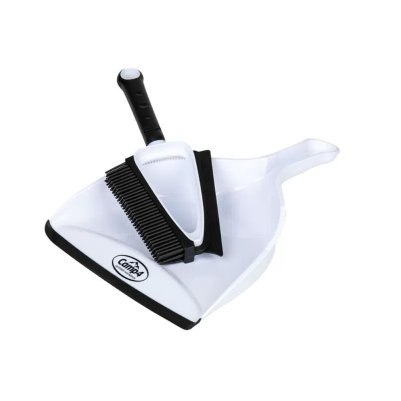 Ensemble CAMP4 composé d’une minipelle et d’une balayette avec un côté poil et un côté raclette en silicone. Cet accessoire est parfait pour le nettoyage de la tente au camping ou du fourgon aménagé et camping-car.
